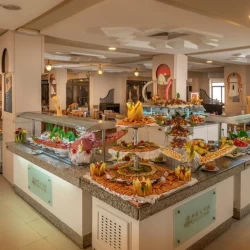 يمكن للنزلاء الاستمتاع بمجموعة متنوعة من خيارات تناول الطعام، بما في ذلك مطعم بوفيه رئيسي مع طهي استعراضي ومطعم انتقائي ومطعم بيتزا والعديد من البارات والمقاهي. تغطي الباقة الشاملة كلياً الوجبات والوجبات الخفيفة والمشروبات غير الكحولية طوال اليوم.